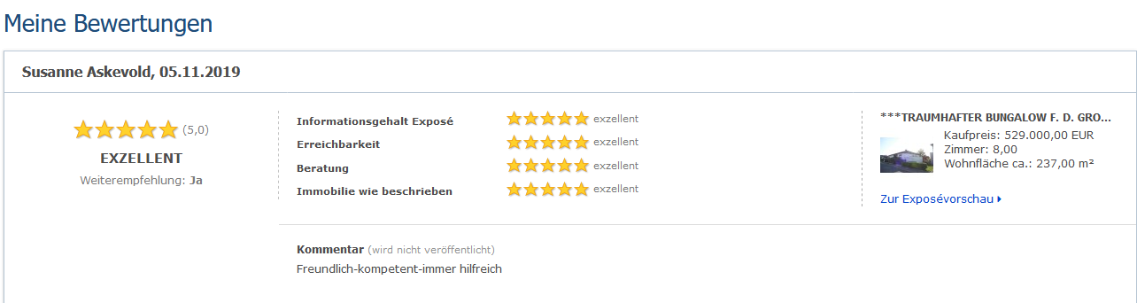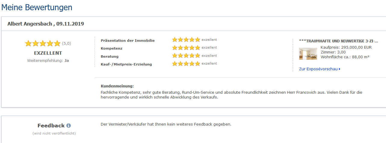 Weitere Bewertungen unserer Verkäufer und Käufer erhalten Sie gerne auf Anfrage.